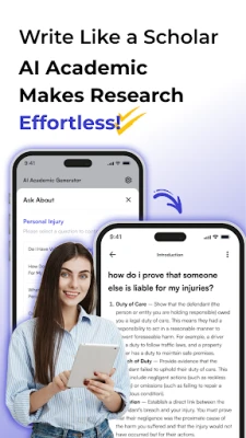 Say goodbye to those late-night writing marathons and writer's block frustrations! Our AI-powered app is designed to unleash your creativity and elevate your academic writing to new heights. Whether you're a student working on essays, a researcher crafting groundbreaking papers, or an aspiring author honing your skills, our app is your trusty sidekick to help you articulate your ideas effectively.
