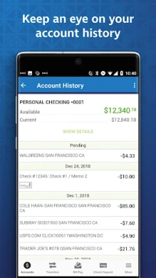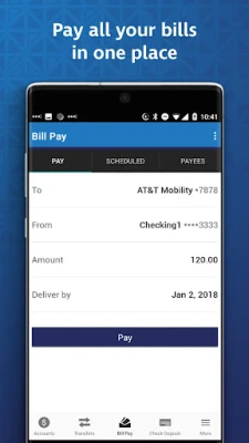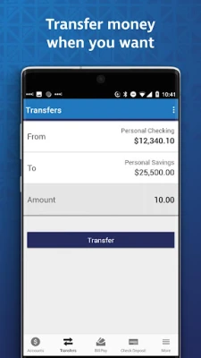 Check balances View recent transactions Deposit checks Pay bills Transfer funds Make loan payments Locate a branch or surcharge free ATM near you Receive push notifications