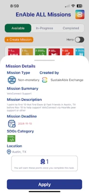 At EnAble ALL, we believe gaming can be a force for good. Our platform rewards players for taking real-world actions that support social and environmental responsibility. By completing missions aligned with the United Nations' Sustainable Development Goals (SDGs), players earn EnAble Tokens, which can be used in-game or across a network of responsible brands.