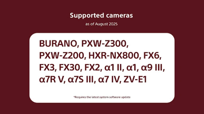 BURANO, PXW-Z300, PXW-Z200, HXR-NX800, FX6, FX3, FX2, FX30,α1Ⅱ, α1, α9Ⅲ, α7RⅤ, α7SⅢ, α7Ⅳ, ZV-E1