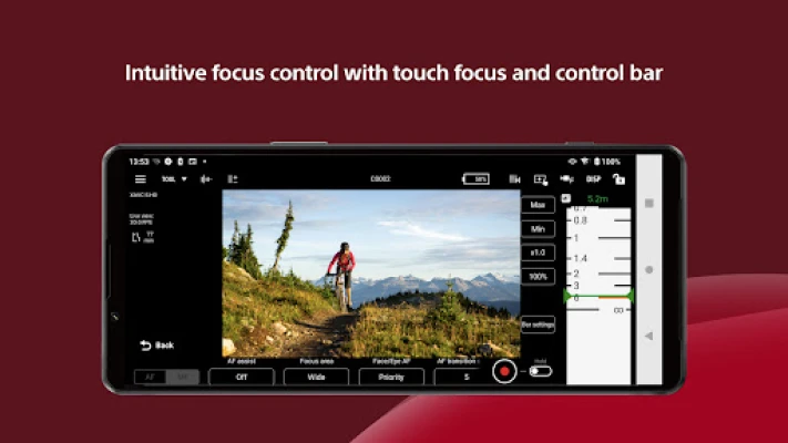 Various focus settings/operations such as touch focusing (operations) and AF sensitivity adjustment (settings) are possible, while intuitive focusing is possible through use of an operation bar on the side of the screen.