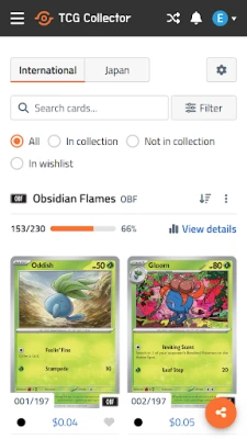Easily navigate through the most complete database of both international and Japanese cards with almost every card variant ever released included, such as Reverse Holo and 1st Edition.