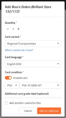 Track your collection progress at any size while specifying all the details you want. Do you have duplicate cards? Maybe you have multiple variants of the same card? What about mint condition or graded cards? We've got you covered on all fronts.