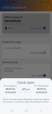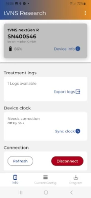 - Monitor the state of your tVNS R device, including information such as battery life and the treatment intensity