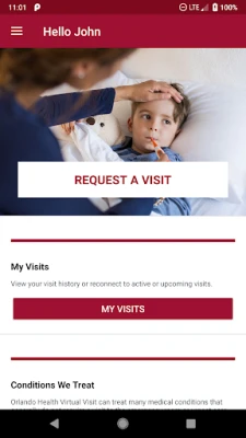 From home or work, while on vacation, or for your child away at college, Orlando Health Virtual Visit is a new option for quick, convenient healthcare at a time and place of your choosing. Patients with nonemergency symptoms (e.g., sore throat, urinary tract infection, earache, pink eye, sinus infection, fever, cough, rash, etc.) now can access on-demand, high-quality care 24/7 using this app via a smartphone, tablet or computer. Connect with a physician in real time to receive a diagnosis and treatment plan, with any needed prescriptions sent to your preferred pharmacy.